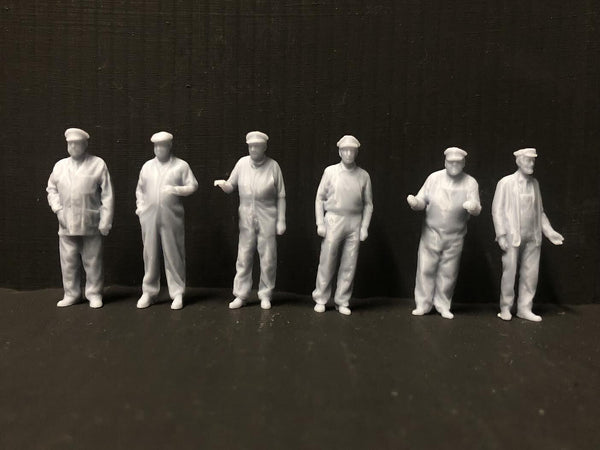 6 Unpainted Figures in 1:43.5 scale suitable for using as Loco crew, the figures are around 39mm tall. They are shipped from stock and are ready to paint. This listing is for six resin printed pieces.