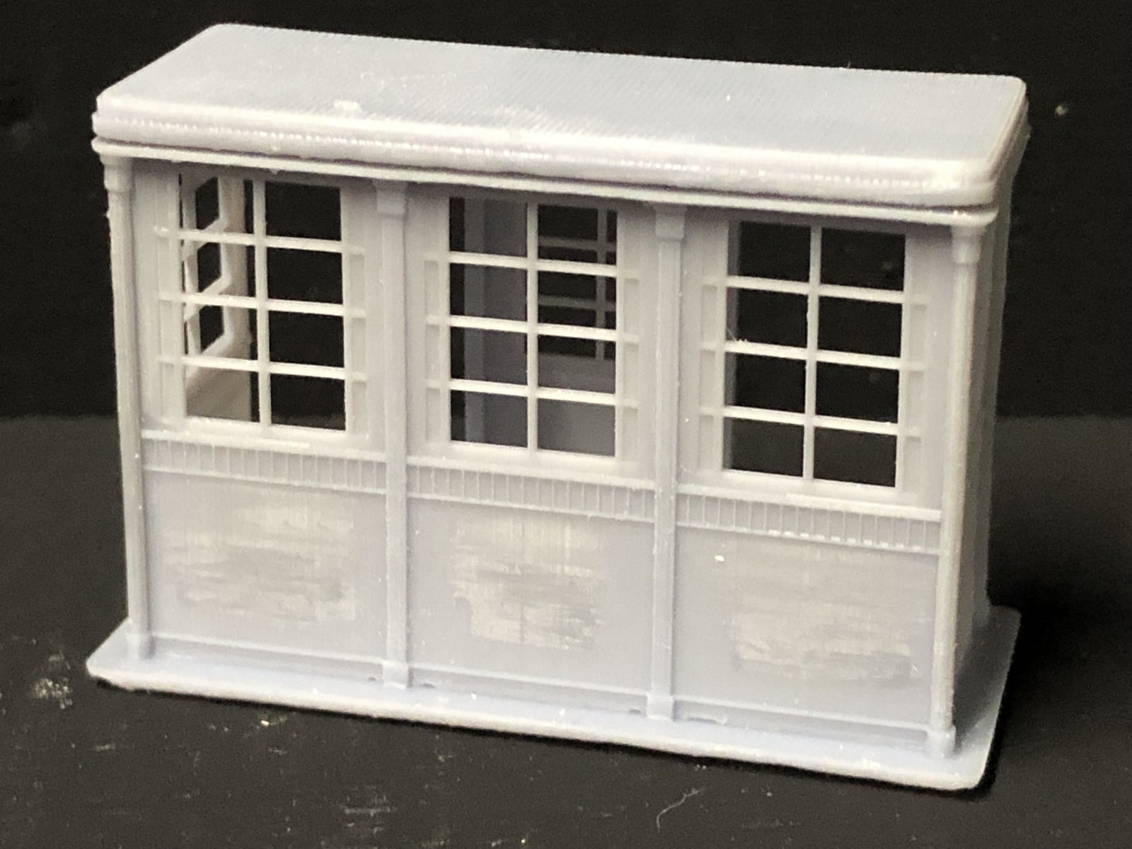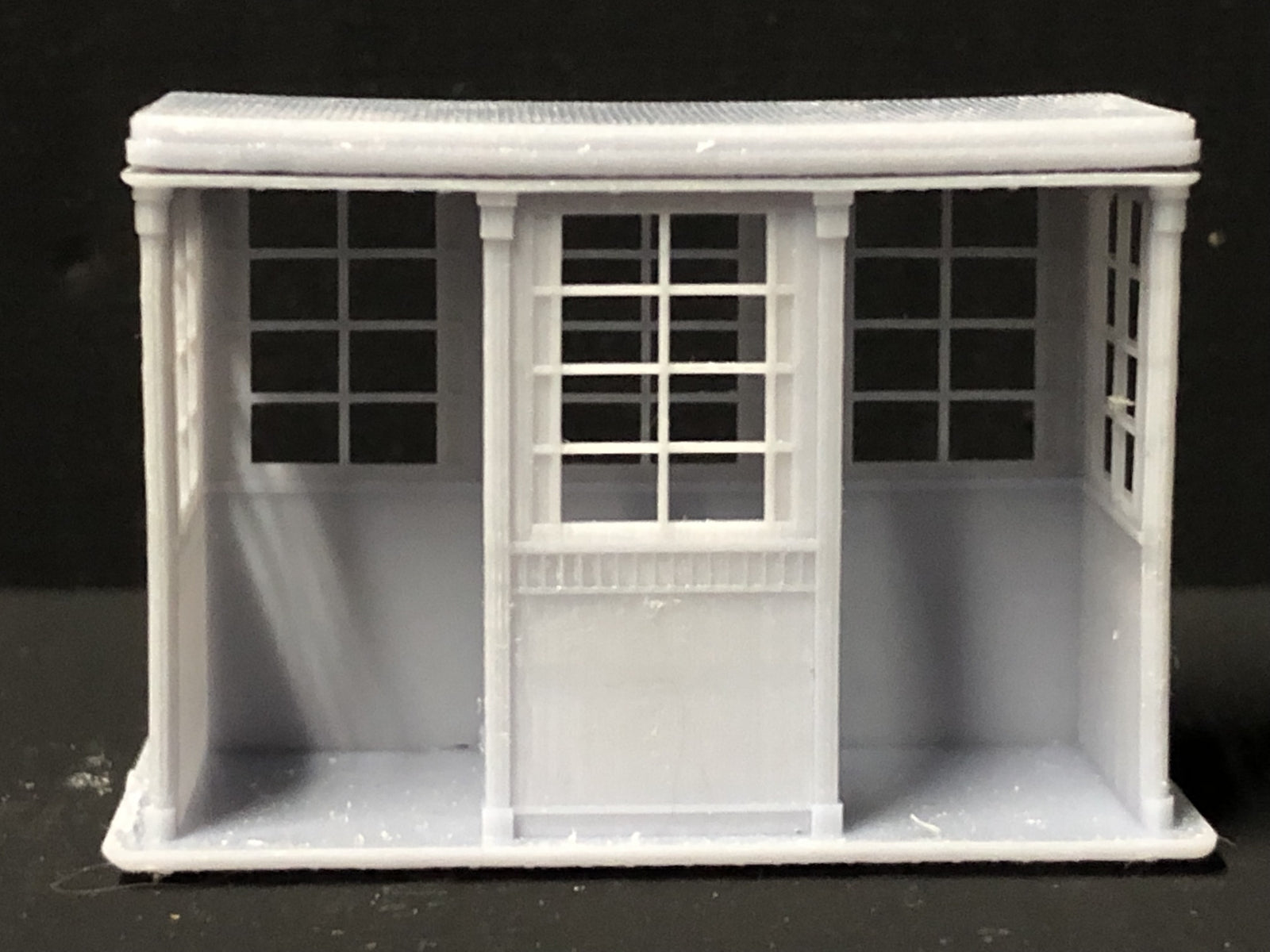 A copy of the Lion foundry Type 2 bus shelter. These were built in several formats and this versions also comes with a bus flag. The shelter was made in cast iron and even today many are still in existence.