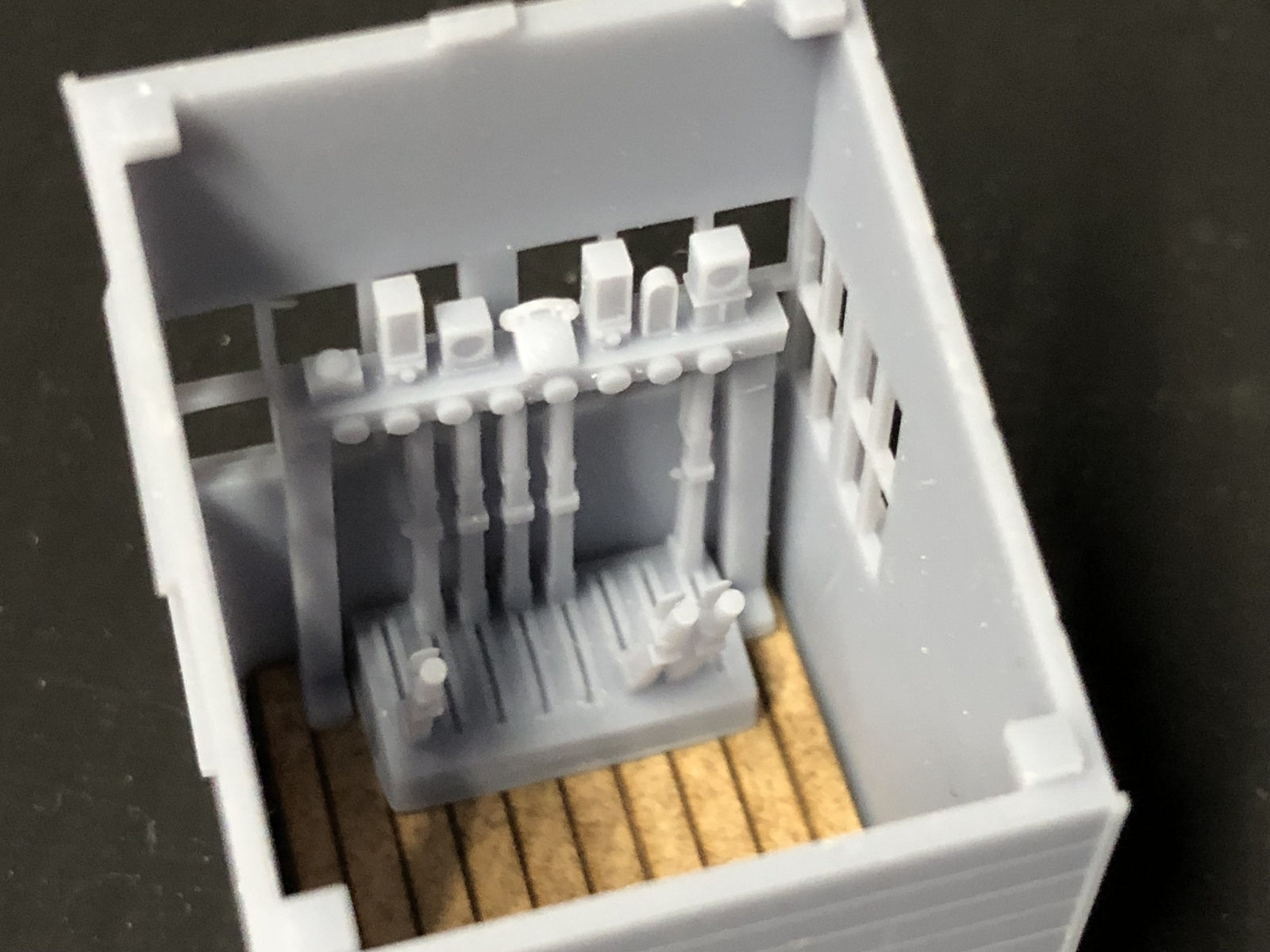 The model is shipped from stock and is ready to paint. This listing is for four resin printed pieces in grey a floor and glazing. The pictures showing it painted are for examples only and are not included.