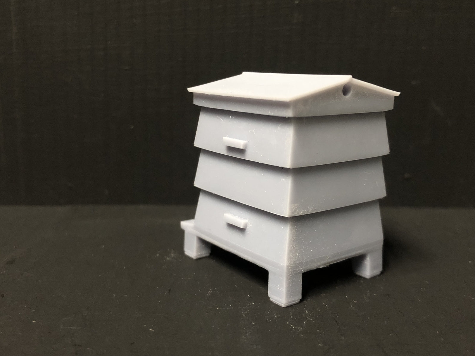 This is a G-Scale model WBC Beehive to add a touch of authenticity to your layout or any miniature setting. Crafted with precision and attention to detail, this model Beehive is based on the WBC beehives popular from the very late 19th century onwards well up to the 50's and beyond. Even today recognizable as the classic beehive. This one has a brood box with two supers above and even a detailed vent in the roof box. It comes unpainted, but very easy to paint, the figure is NOT included, just shown for scale.