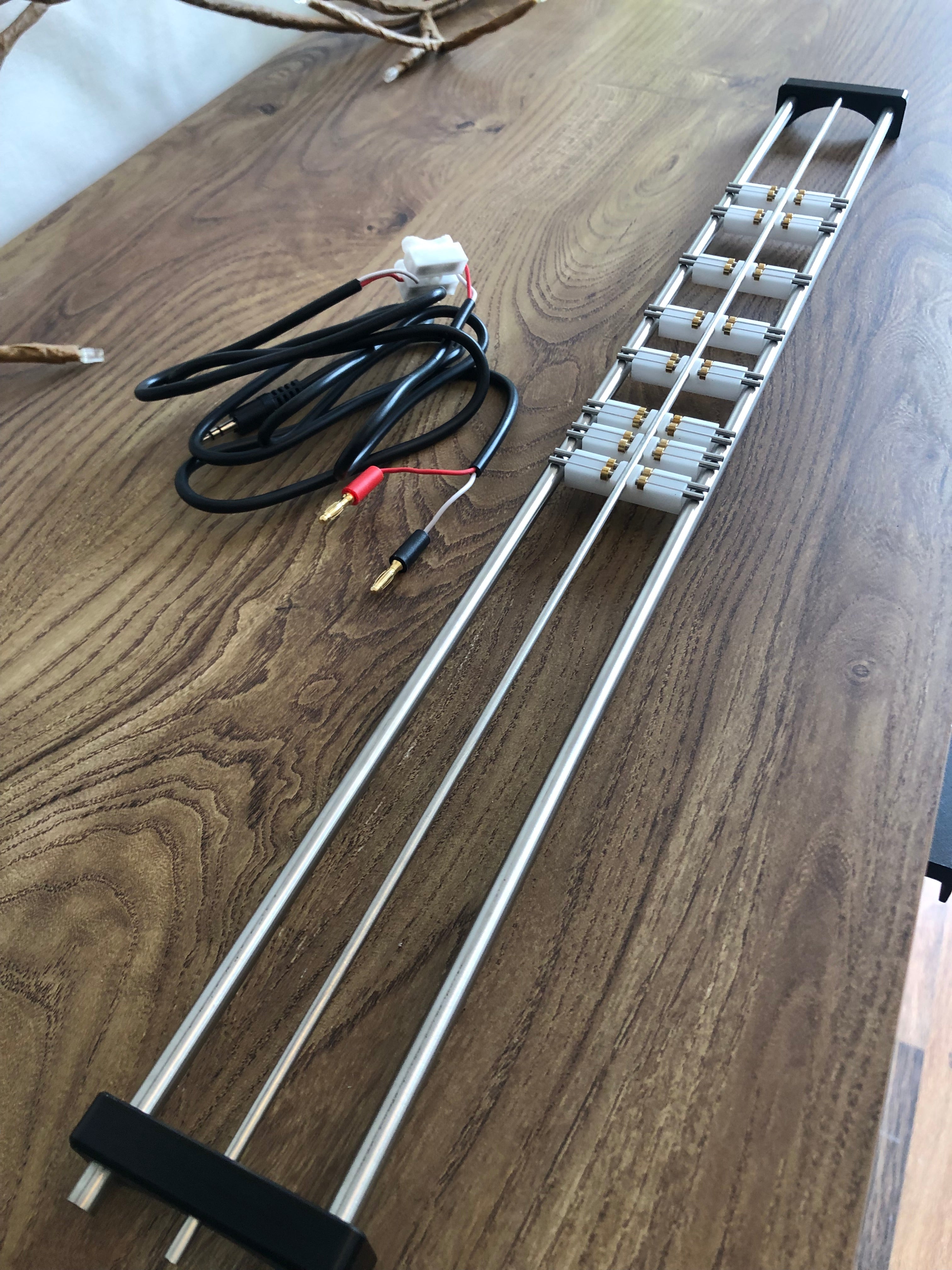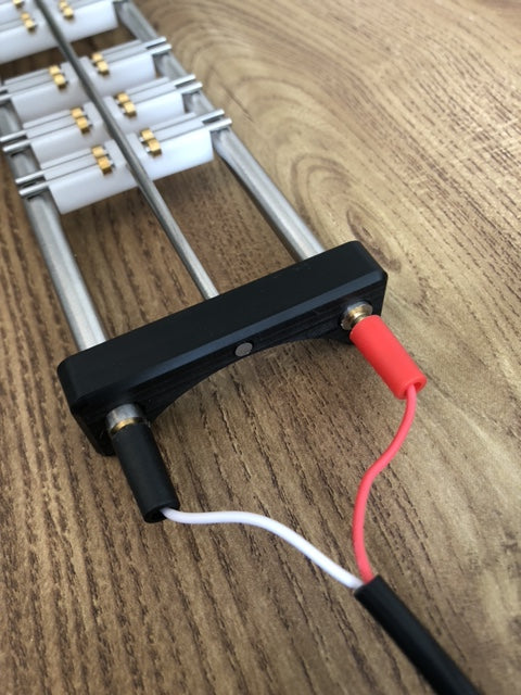 Power is supplied via a pair of 3mm banana plugs, which are included.
