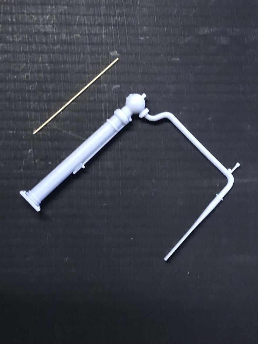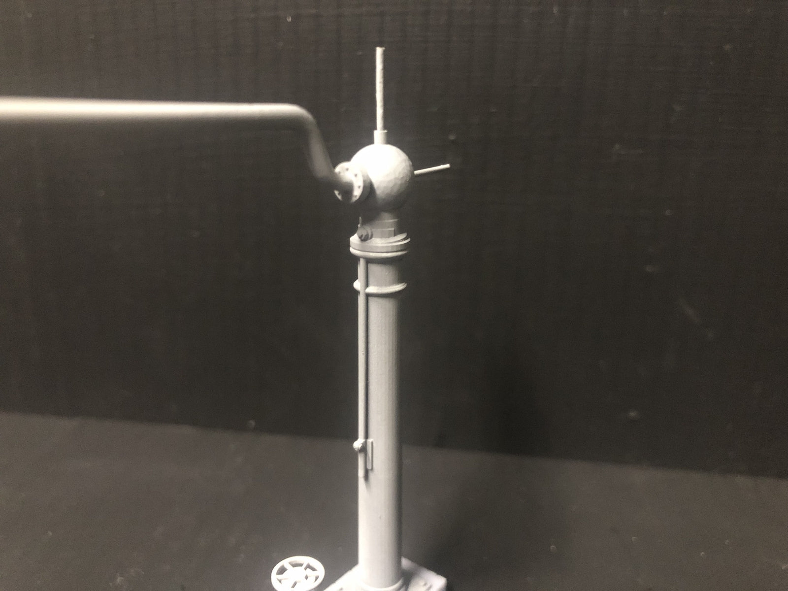 Here is our interpretation of a GWR Water Crane. In addition to the crane and control there is also the catch stand. A must have addition to any layout if you are running Steam locos. In real life they are always being topped off with water, imperative to their running. The support rods are supplied as a seperate section of brass wire which will require cutting to size and slots into the crane and can be attached with a very tiny amount of glue
